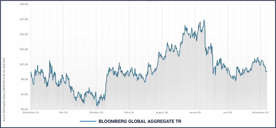 In diesem Jahr sollten zumindest die Weltleitbörsen in New York von der Aussicht auf fallende Zinsen profitieren. Tatsächlich senkte die US-Notenbank Mitte Dezember die Fed Fund Rate als Leitzins um weitere 25 Basispunkte auf 3,50 bis 3,75 Prozent. Das war an den Aktienmärkten allerdings mehrheitlich längst erwartet worden, sodass der Anstieg des Dow Jones Industrial Average Index auf ein neues Rekordhoch bei 45.452 Punkten nicht von anderen Aktienindizes begleitet wurde.